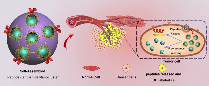 近日,必赢雷波研究员课题组与何旺骁博士合作,研发了一种全新的基于稀土纳米团簇杂化自组装的多种抗肿瘤多肽递送方法,大大提高了多肽的生物稳定性,实现了多肽的肿瘤专一性递送。此研究有助于解决常规肿瘤药物治疗中的脱靶毒性问题,为抗肿瘤多肽药物的研发及应用提供了一种全新策略。